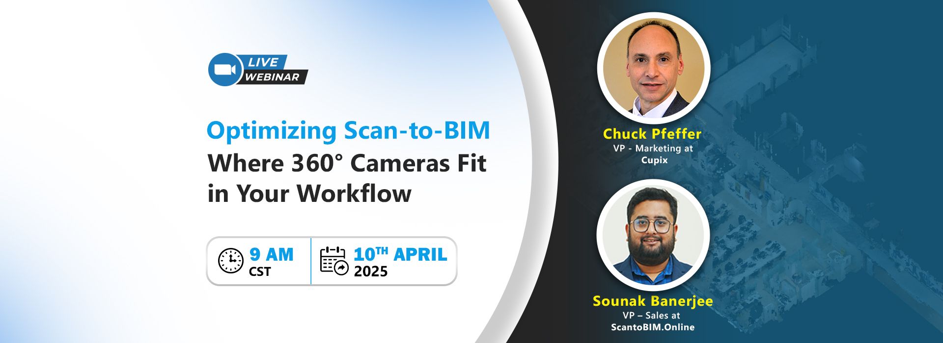 Scan-to-BIM has evolved, and integrating 360° camera technology can be a game-changer. Join ScanToBIM.Online, and Cupix, for an exclusive webinar where we explore how 360° virtual tours can seamlessly generate point cloud data to enhance project efficiency.